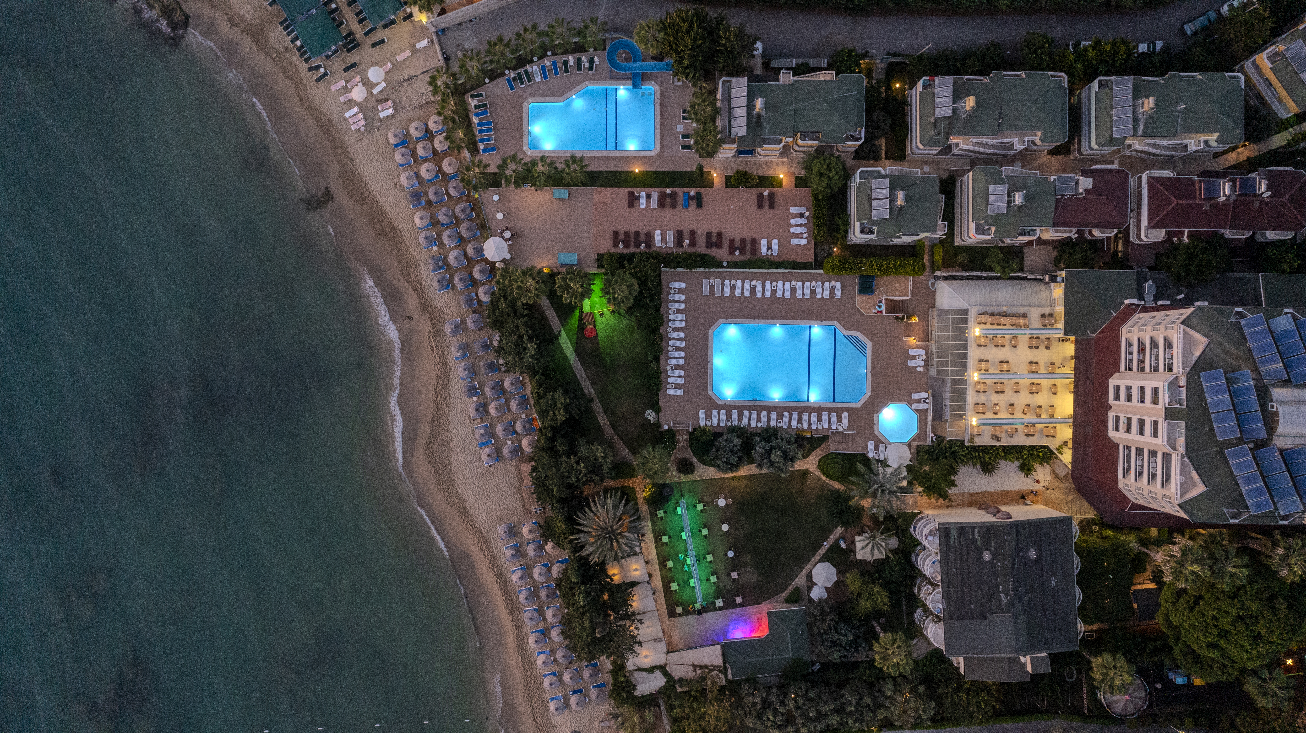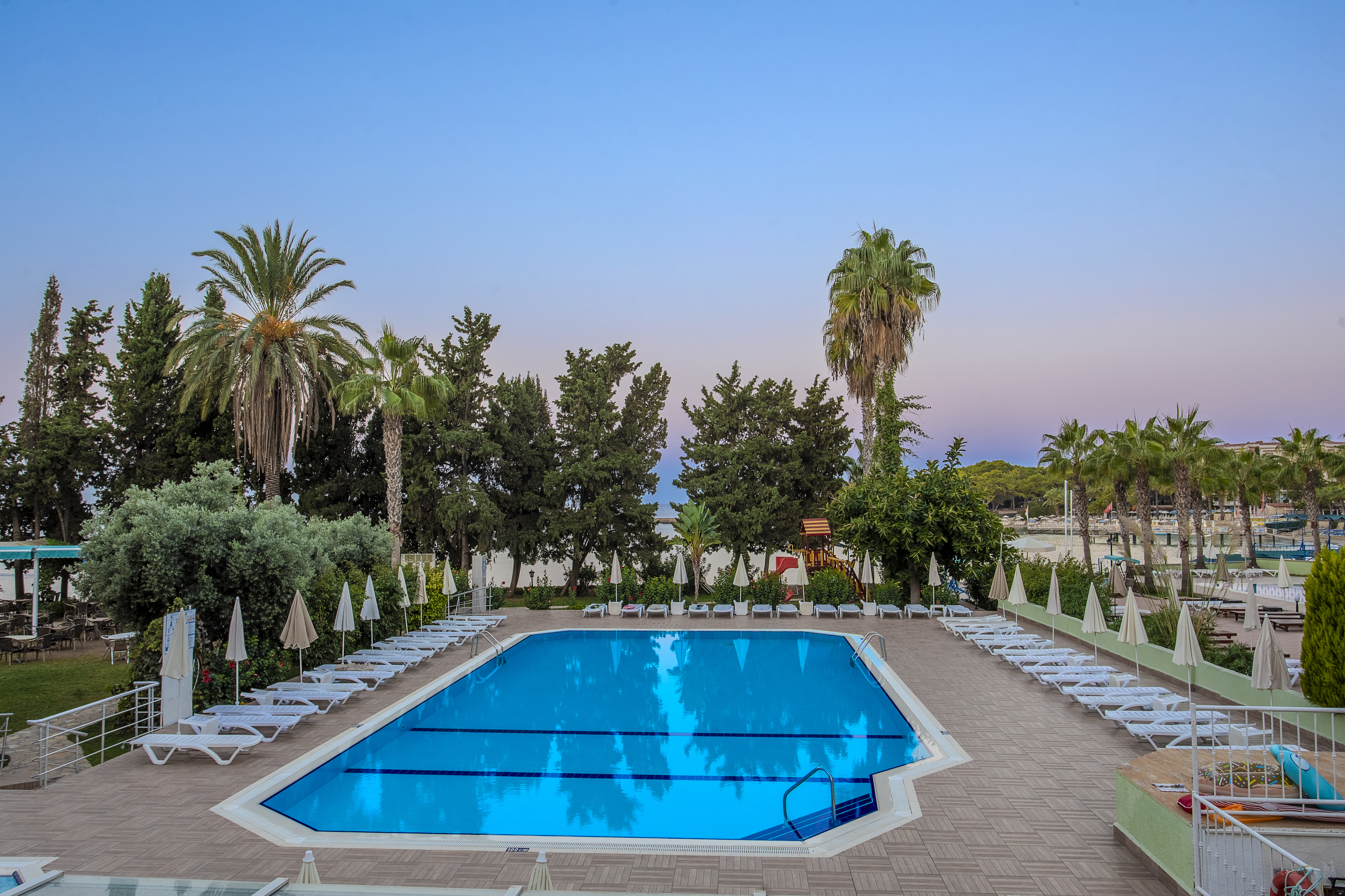 Otel, altı katlı bir ana binadan ve , üç katlı yedi adet yan binalardan oluşmaktadır. Otel toplam 124 odaya sahiptir. Otel müşterilerine resepsiyon, lobi, Tv köşesi, ana restoran 2 adet bar (1x lobi bar,1 x bahçe bar) fitness odası SPA bölümü, çeşitli dükkanlar, kuaför, gün içerisinde animasyon (soft) 1 adet yüzme havuzu havuzda ve deniz kıyısında şezlong şemsiye ve plaj havlusu ücretsiz minder ücretli kapalı havuz (ısıtmasız) 1 adet çocuk havuzu (ayrı) çocuk alanı sunulmaktadır.